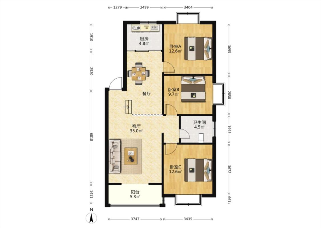 3室2厅1卫