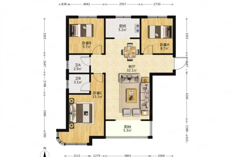 3室2厅1卫