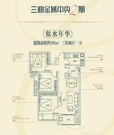 宝鸡市金台区金域蓝湾98平米,小三室,简装,二手房