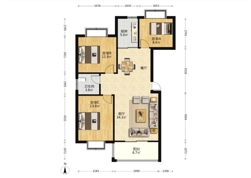 3室2厅1卫